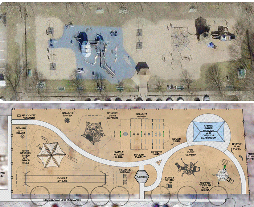 The proposal is to replace all the existing equipment with new playground equipment, along with additional new amenities. Kevin Alverson provided the following summary: